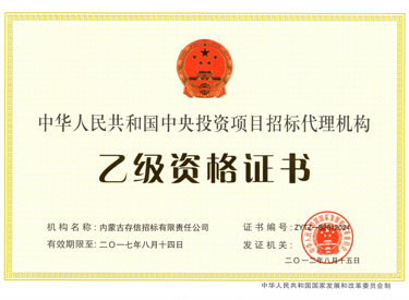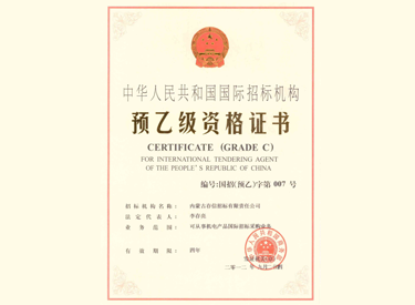 • 中華人民共和國(guó)國(guó)際招標(biāo)機(jī)構(gòu)預(yù)乙級(jí)資格證書